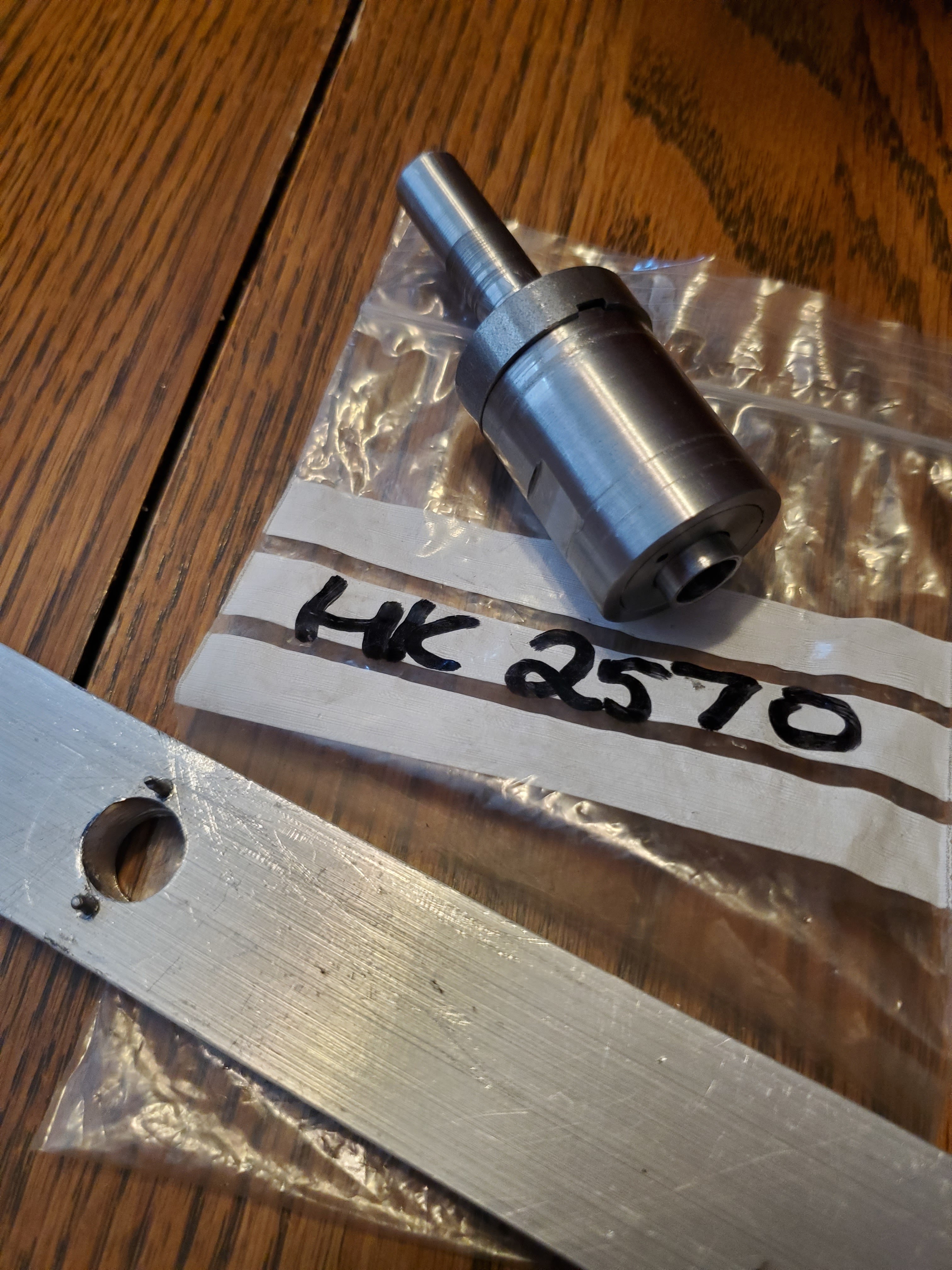The next part required is the broach's "spindle". This is the part that actually holds the rotary broach itself. Following the specs, I slapped it together. Now, I know I am supposed to wait until I have an actual broach, because angles and math, but I wanted this complete. Here is the parts, followed by assembly.